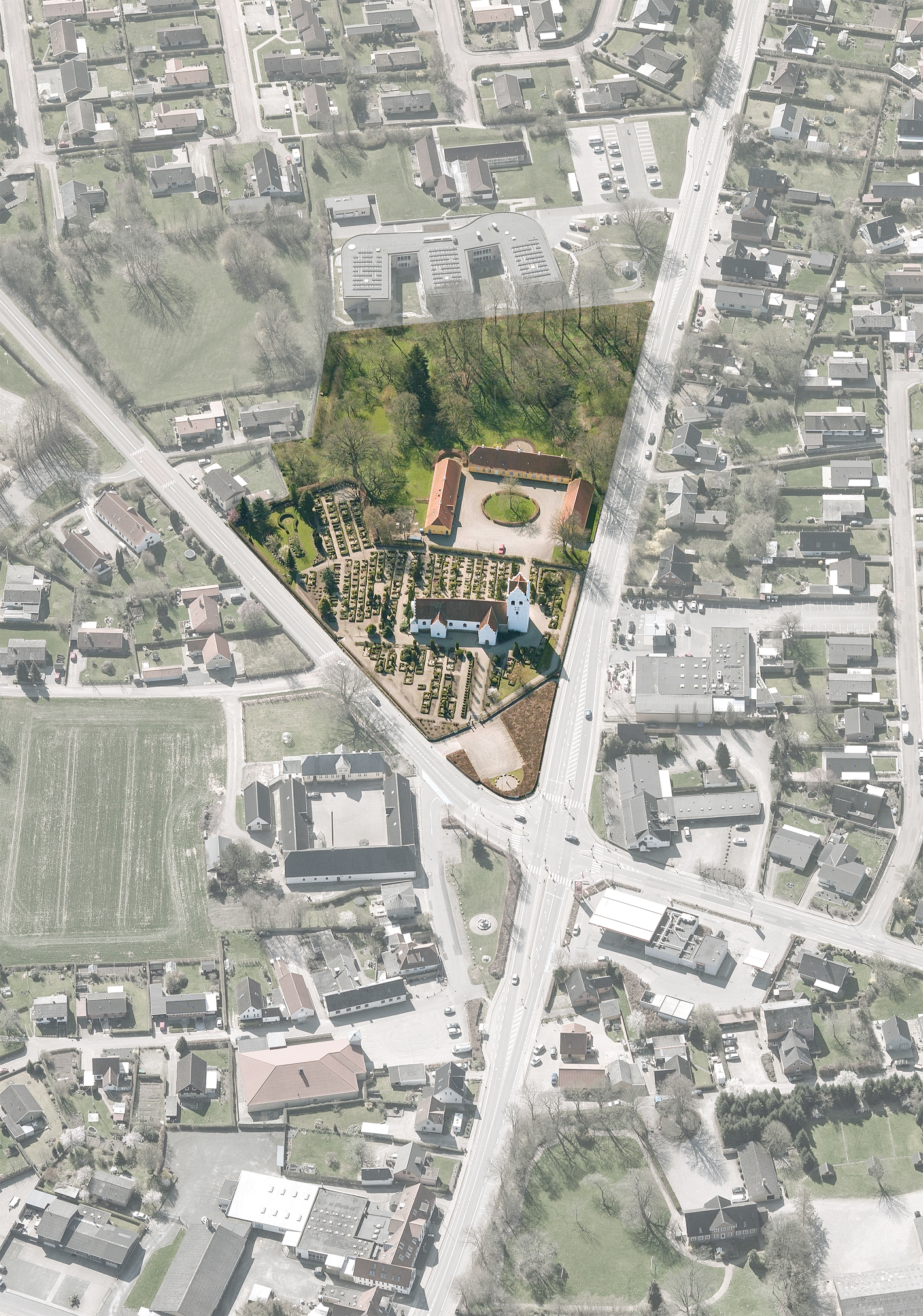 Det er vores fælles vision at kirkegården skal udvikle sig til at blive mere grøn, simplere at vedligeholde, samt at kunne rumme nye begravelsesmønstre. Den skal blive mere harmonisk. Eksisterende særpræg og kvaliteter skal fremhæves. Det handler om at få bedre oplevelse både som besøgende og for dem som driver den. For at forstærke historien plantes en hæk der deler den gamle og den nye kirkegård mod syd. Omkring kirken bevares tre hovestier og et klart defineret område med grus omkring kirken. Derudover lægges resten af kirkegården i græs. For at forstærke kirkegårdens rum plantes træer langs perifirien, de tre stier fremhæves med hver deres allé og mellem gravstederne plantes letløvede træer som giver et smukt skyggespil.